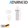 Die Advanc3D DaVolcano Nozzle aus Messing CuZn37 ist speziell für 3.00mm Filament entwickelt. Mit einer Düsenöffnung von 0.8mm ermöglicht sie eine gleichmäßige Materialextrusion und sorgt für zuverlässige Druckergebnisse bei großen Schichtstärken.