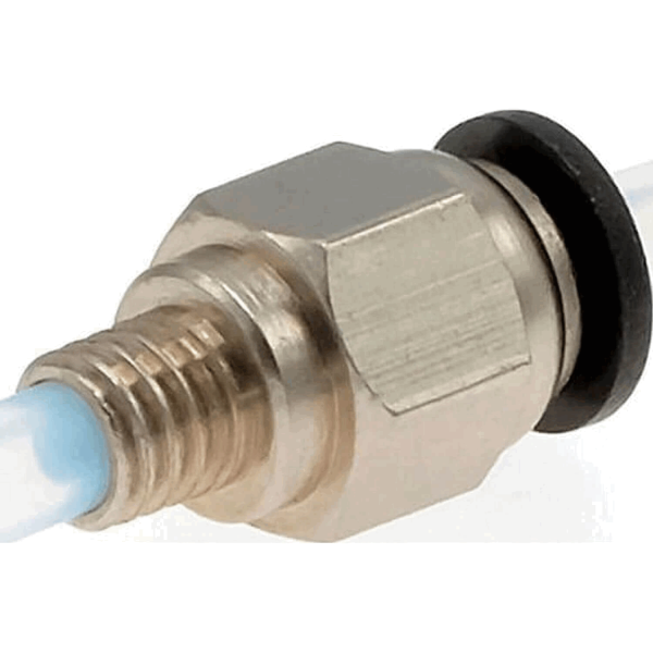 Die Advanc3D Push Fit PTFE Bowden PC4-M6 Kupplung sorgt für eine stabile und sichere Verbindung zwischen PTFE-Schlauch und 3D Drucker-Extruder. Durch den 4mm Anschluss wird der Schlauch optimal fixiert, während das M6 Gewinde eine zuverlässige Befestigung ermöglicht.